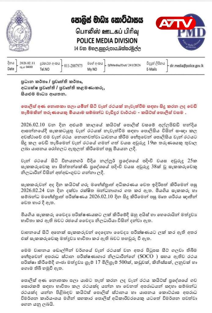 இந்தநிலையில் இன்றையதினம் (2026.02.11) காவல்துறை ஊடகப் பிரிவு இது குறித்து ஒரு அறிக்கையை வெளியிட்டுள்ளது.