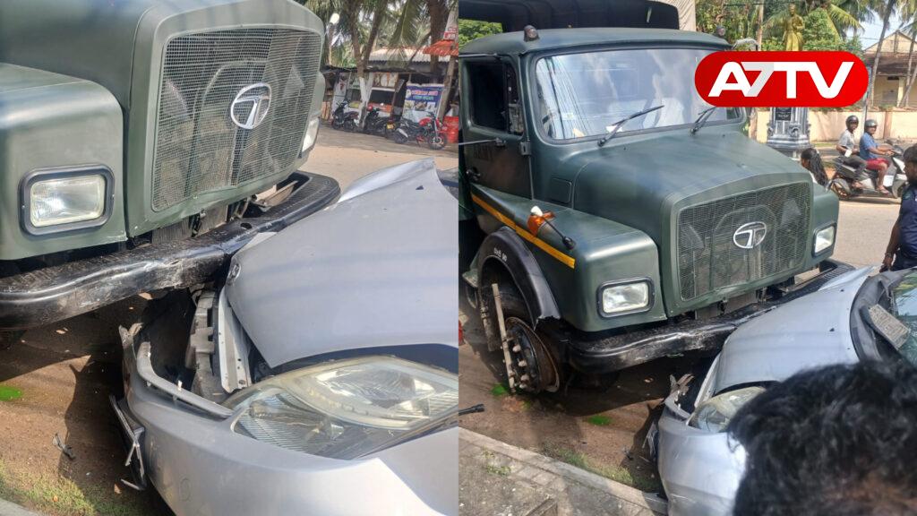 யாழில் இராணுவ வாகனமும், காரும் நேருக்கு நேர் மோதி விபத்து!