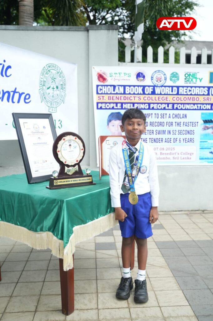 50 மீட்டர் தூரத்தினை 49 நொடிகளில் நீந்திக் கடந்து சோழன் உலக சாதனை படைத்த 6 வயது சிறுவன்