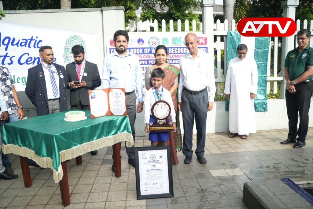 சிறு வயது முதலே நீச்சல் பயிற்சி பெற்று வரும்  ஹெதேவ் இன்று சென்ட் பெனடிக்ட் கல்லூரியில் நடைபெற்ற சோழன் உலக சாதனை படைக்கும் முயற்சியின் போது அங்கு அமைந்துள்ள நீச்சல் குளத்தில் 50 மீட்டர் தூரத்தினை ஃப்ரீ ஸ்டைல் என்ற முறையில் 49 நொடிகளில் நீந்திக் கடந்தார். இவரது இந்த முயற்சியைக் கண்காணித்த சோழன் உலக சாதனைப் புத்தக நிறுவனத்தின் இலங்கைக் கிளையின் துணைத் தலைவர் திரு. ஸ்ரீ நாக வாணி ராஜா மற்றும் பொதுச் செயலாளர் திரு. இந்திரநாத் பெரேரா போன்றோர் சிறுவனின் முயற்சியை உலக சாதனையாக அங்கீகரித்து, அவருக்குச் சட்டகம் செய்யப்பட்ட சான்றிதழ், பதக்கம், அடையாள அட்டை, நினைவுக் கேடயம் மற்றும் பைல் போன்றவற்றை வழங்கிப் பாராட்டினார்கள்.
