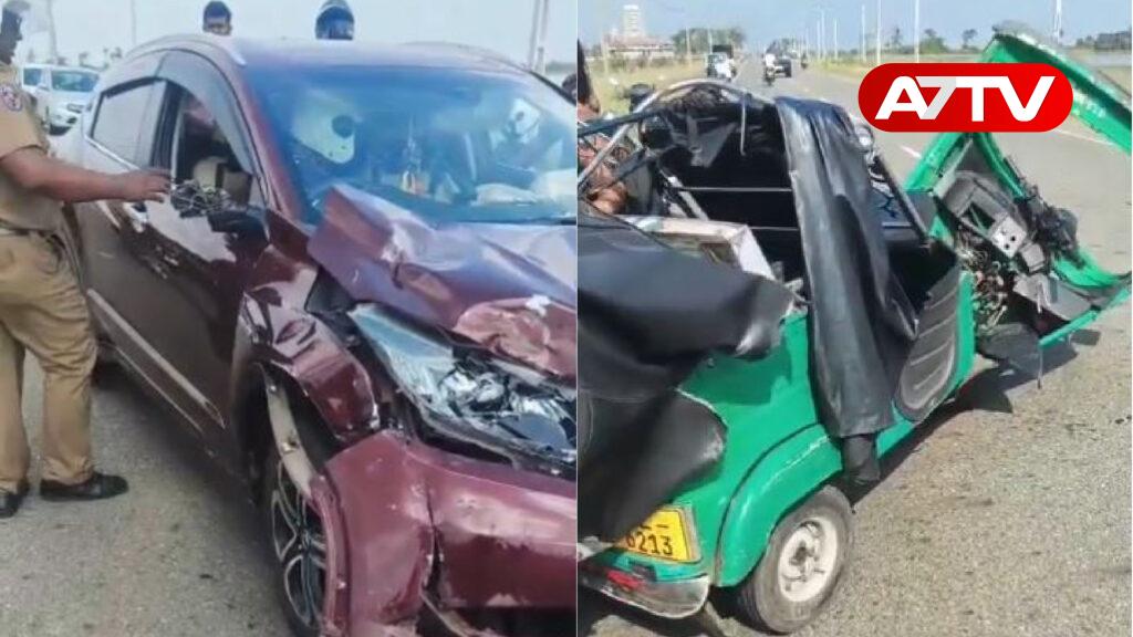 இலங்கைக்கு சுற்றுலா வந்துள்ள பிரான்ஸ் நாட்டை சேர்ந்த 67 மற்றும் 70 வயதுடைய இருவர் வாடகை கார் ஒன்றில் மண்கும்பான் பகுதியில் பயணித்துக்கொண்டிருந்த வேளை அவர்களின் கார் எதிரே வந்த ஆட்டோ வுடன் மோதி விபத்துக்குள்ளானது.