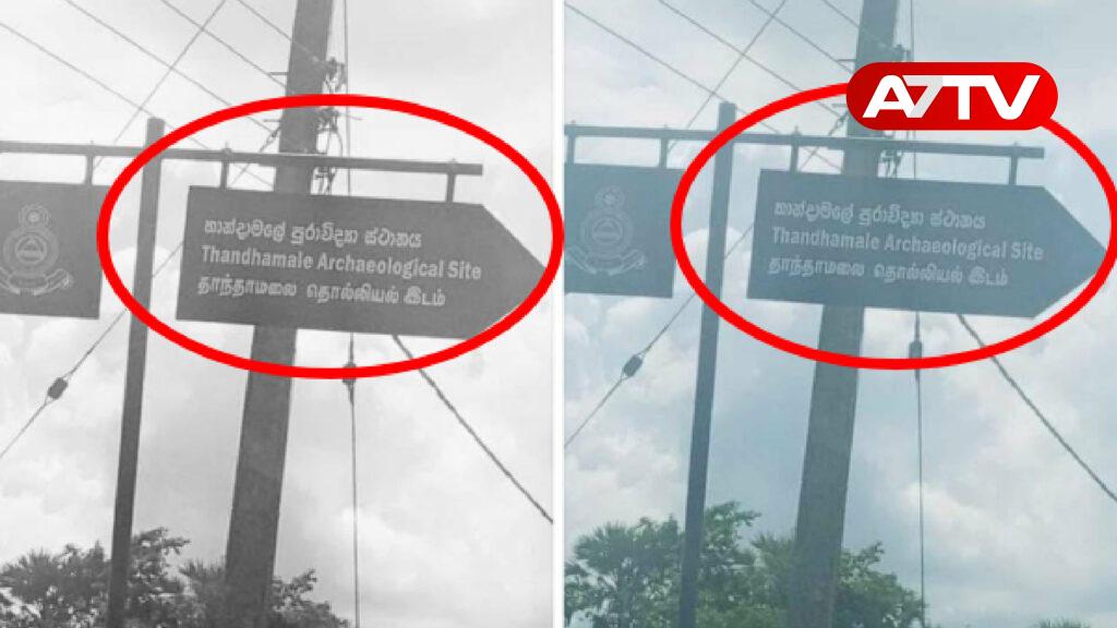 அதில் தாந்தாமலை தொல்லியல் இடம் என மூன்று மொழிகளாலும் எழுதப்பட்ட அறிவித்தல் பலகை தாந்தாமலை செல்லும் நாற்பது வட்டை சந்தியில் முருகன் ஆலயத்தை அம்புக்குறி காட்டி இடப்பட்டுள்ளது.