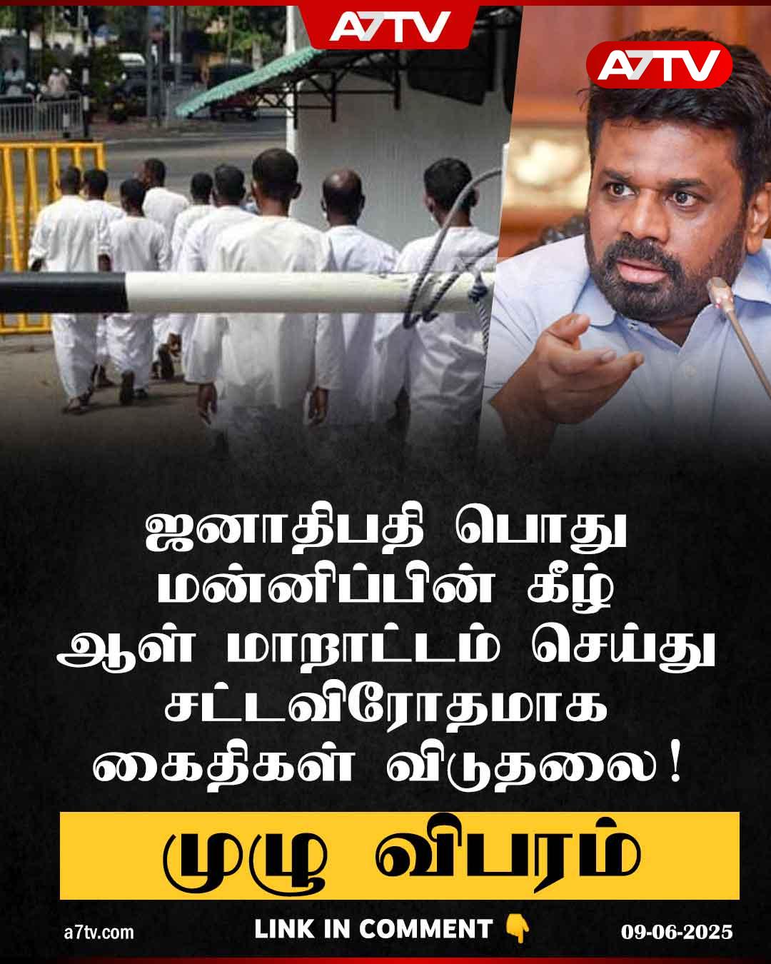 2025 வெசாக் பண்டிகையை முன்னிட்டு ஜனாதிபதி பொது மன்னிப்பின் கீழ் அனுராதபுரம் சிறையில் தடுத்து வைக்கப்பட்டிருந்த டபிள்யூ.எச். அதுல திலகரத்ன என்பவர் விடுவிக்கப்பட்டுள்ளார்.