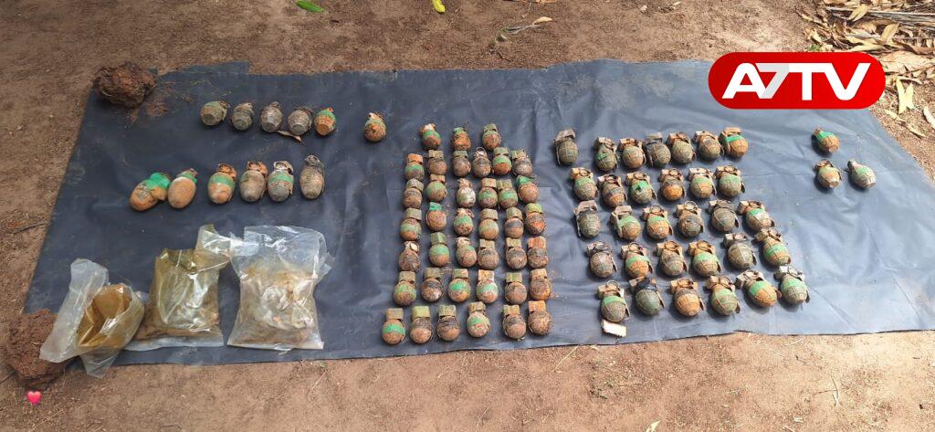 இதன்போது, 86 கைக்குண்டுகள், ரி56 ரக துப்பாக்கிக்கான ரவைகள், கைத்துப்பாக்கிக்கான மூன்று ரவைகள், 5600 போதை மாத்திரைகள், 10 கிராம் ஐஸ் போதைப்பொருள் என்பன நிலத்தின் கீழ் பதுக்கி வைக்கப்பட்டிருந்த நிலையில் மீட்கப்பட்டன.