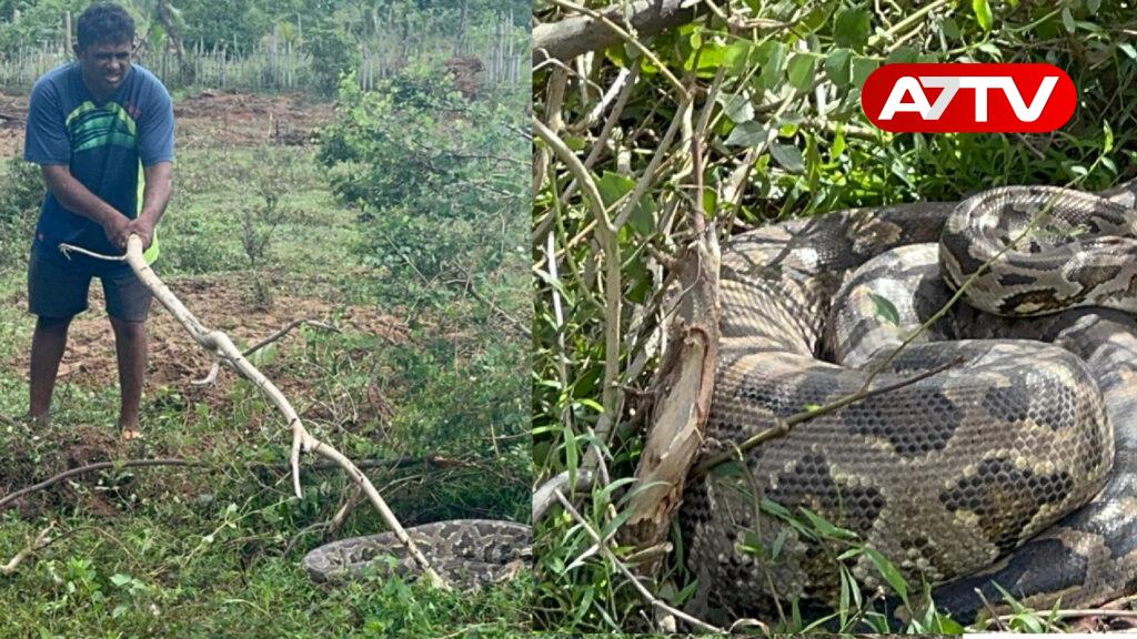 அப்பகுதியில் உள்ள தோட்டக்காணியினை அதன் உரிமையாளர் துப்பரவு செய்து கொண்டிருந்தபோது, பாம்பு ஒன்று எதனையோ விழுங்கிய நிலையில் அசைய முடியாது தடுமாறிக் கிடந்தது.