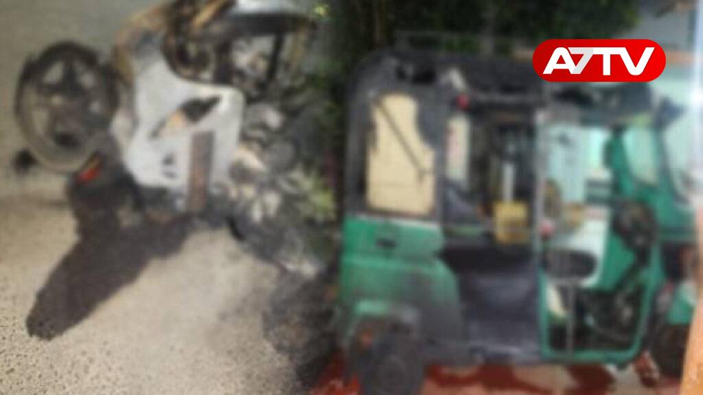 மோட்டார் சைக்கிளில் வந்த குறித்த குழு, வீட்டின் முற்றத்தில் நிறுத்தப்பட்டிருந்த முச்சக்கர வண்டிக்கு மண்ணெண்ணெய் ஊற்றி தீ வைத்துள்ளதாக தெரிவிக்கப்படுகின்றது.